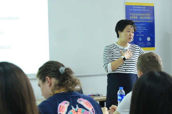 本次论坛围绕核心议题“21世纪全球化时代中的高等教育:理论与实践”展开,十六名来自中美三所院校的大学生不仅共同参与了第十届上海大学生电视节、《朗读者》现象研讨会、民俗文化手工沙龙等活动,同时还在12日至14日三天内,集中地与香香漫画 、外语学院以及教育学部的多位教授学者展开了关于论坛核心议题的深入探讨。