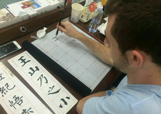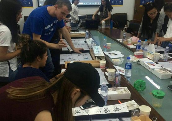 13日在外语学院美国研究中心陈俊松副教授开展的讲座围绕“Historical Legacy of a Global City in Turmoil: The Jewish Settlement in Shanghai during WWII”展开。熟悉的话题,新颖的视角让Sydney捧着一份描述留居上海的犹太人的生活的小册子看了许久。在一个半小时的学术讨论结束后,中美大学生还一起学写毛笔字,气氛欢洽。