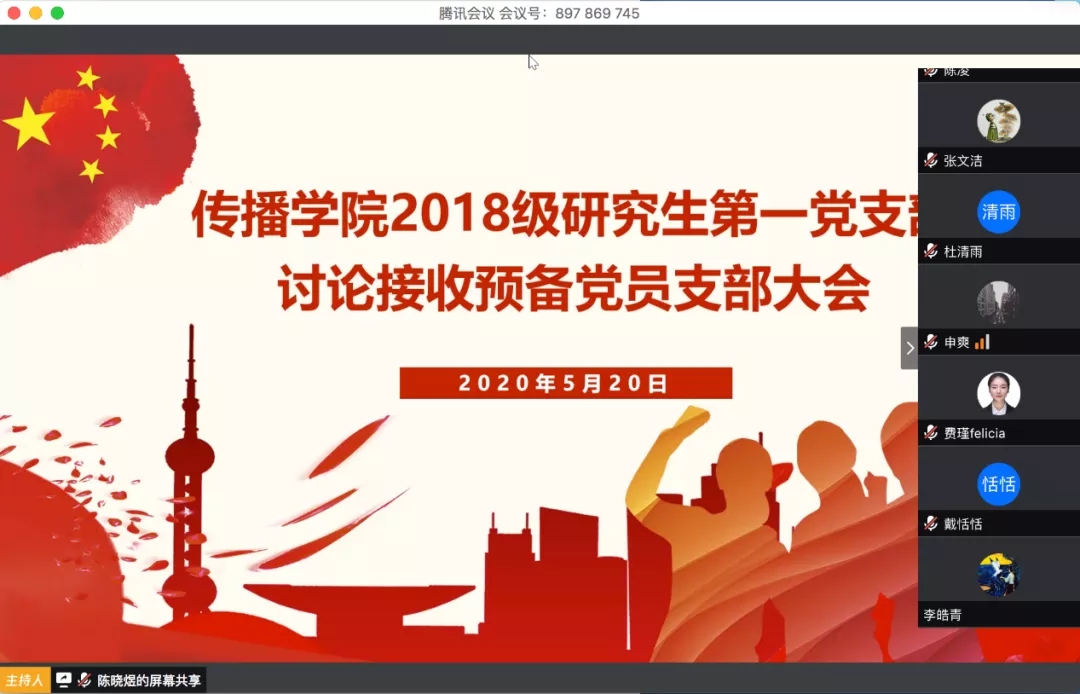 2020年5月20日19点,香香漫画 2018级研究生第一党支部讨论接收预备党员支部大会通过腾讯会议顺利召开。