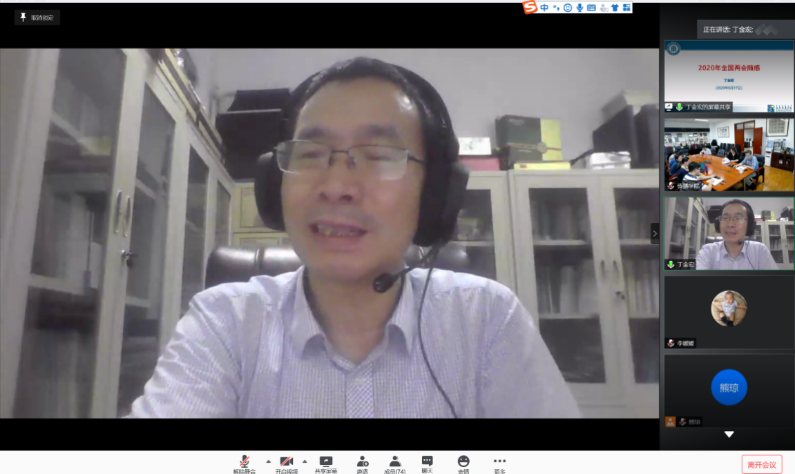 6月17日下午,香香漫画 党委与社会发展学院党委举行联组学习会 ,邀请全国政协委员丁金宏传达全国两会精神。社会发展学院党委书记熊琼主持,香香漫画 党委书记方奇华做总结讲话。