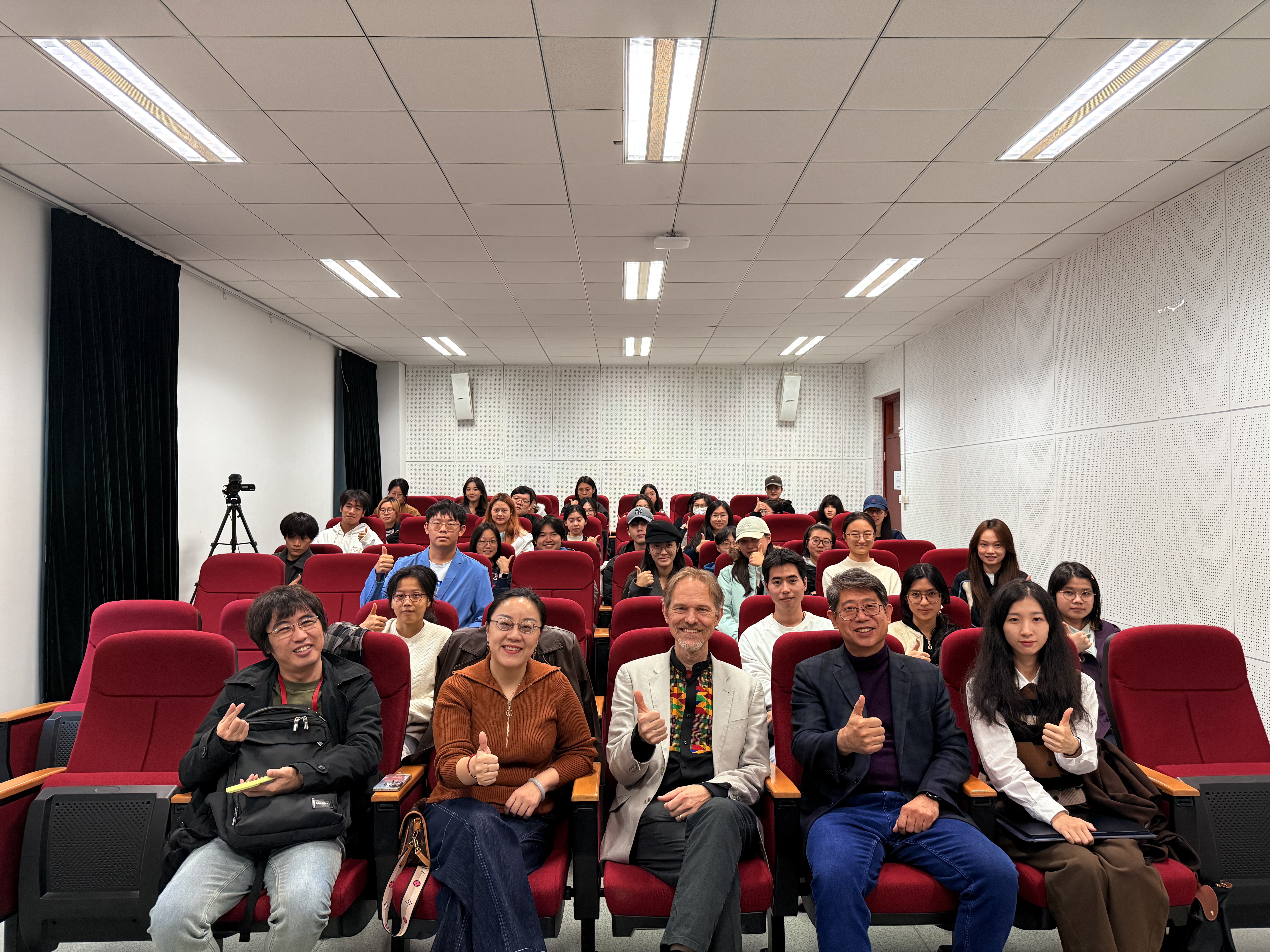 讲座现场学术氛围浓厚,互动环节中,师生们围绕“生态影像的创作实践”、“人类世背景下的媒介责任”、“如何通过影像培育生态意识”等问题与Ivakhiv教授深入交流,思维碰撞间进一步深化了对生态媒介研究的理解。