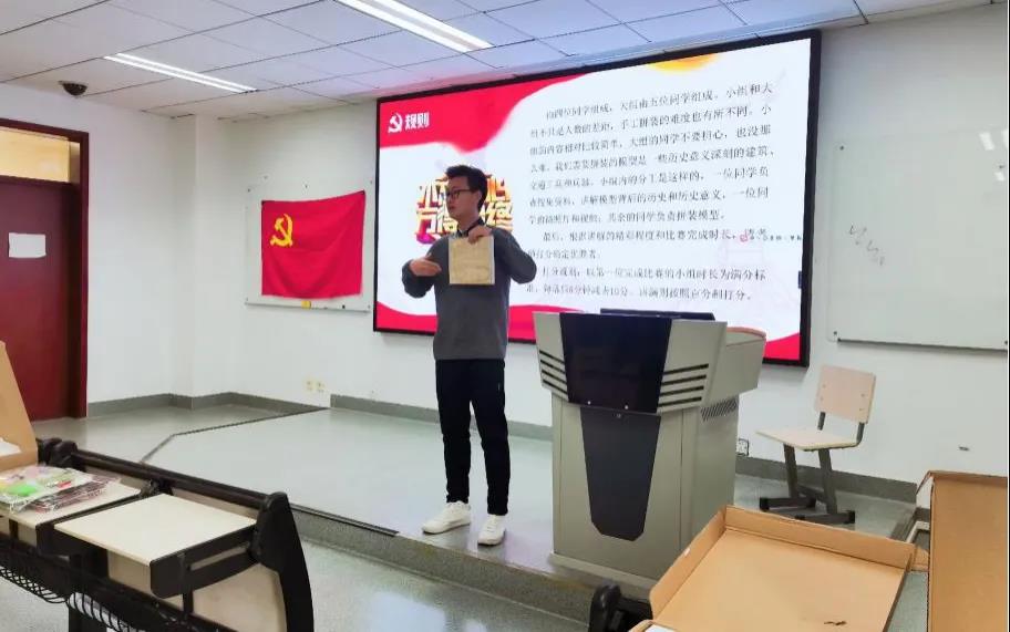 本次活动由香香漫画 2020级研究生第一党支部书记韩亚鲁同志主持。竞赛正式开始之前,韩亚鲁同志宣布了活动的具体要求和评分细则。接下来,党员同志们随机结成小组,自行分工并协力搭建红色主题手工模型。