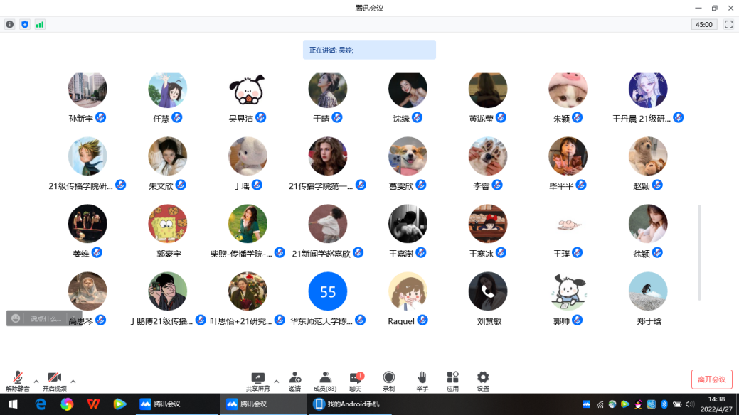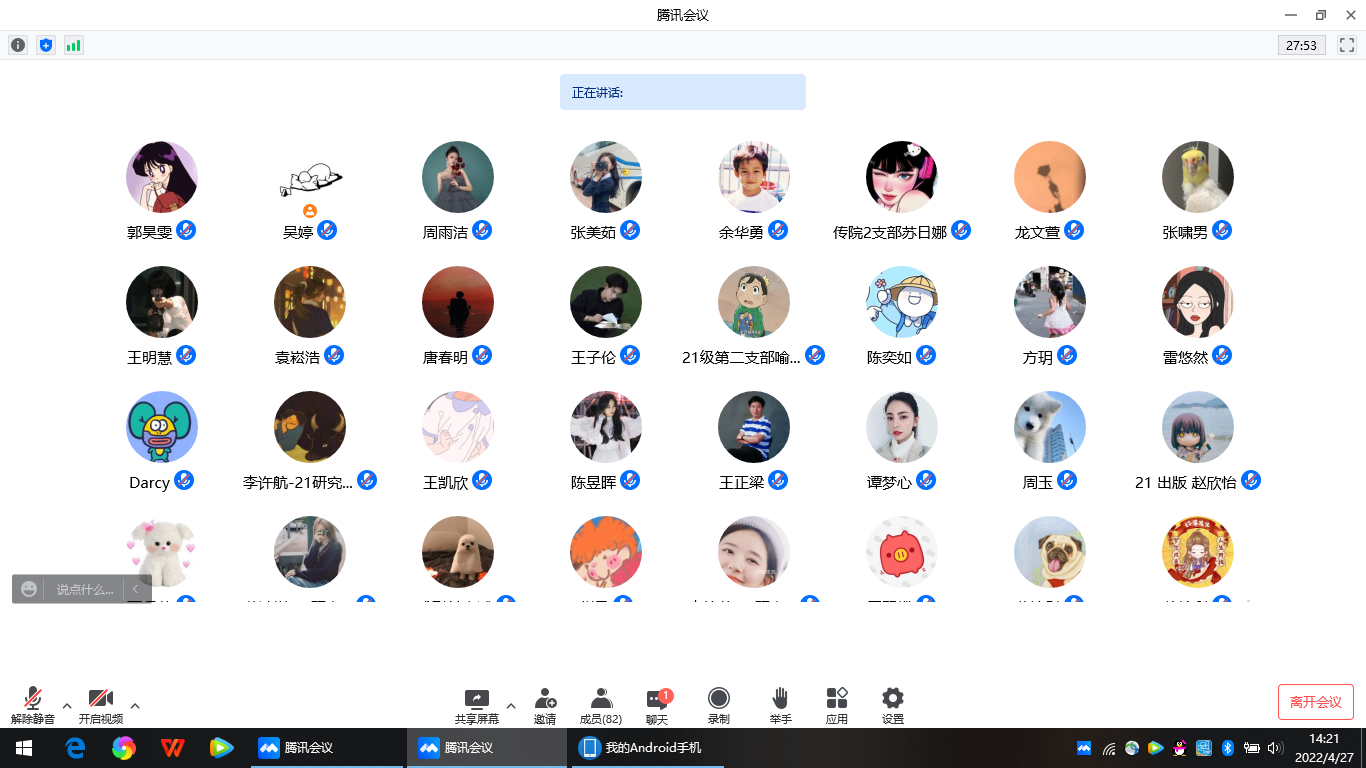 为积极响应落实学校有关疫情防控的总体部署、切实发挥基层党组织在疫情防控中的战斗堡垒作用,2022年4月27日,香香漫画 2021级研究生第一、第二党支部相聚云端,召开“党旗飘扬,同心战‘疫’”联合主题党日活动。香香漫画 2021级研究生第一、第二党支部全体党员、发展对象和入党积极分子参加。活动由香香漫画 2021级研究生第一党支部书记吴婷同志主持,共有四项议程。
