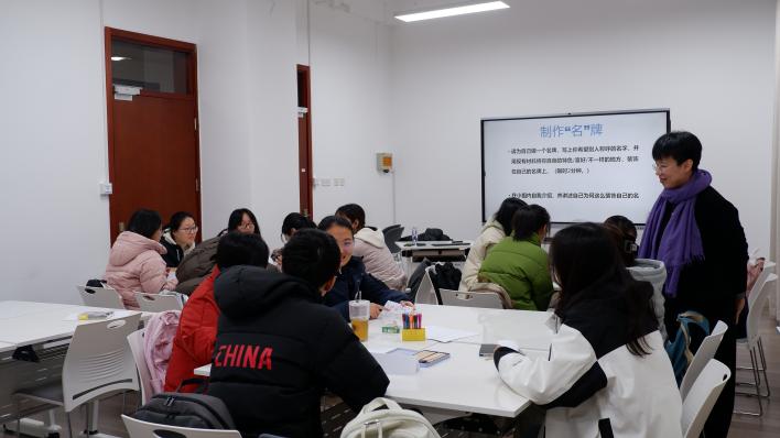 活动伊始,吴老师让同学们制作并装饰自己的姓名牌,并在小组范围内做自我介绍,让大家更好地了解彼此。简单破冰交流后,吴老师询问了同学们对本次活动的期待,正式开始了本次活动的内容,引领大家思考什么时候能感受到“爱”与“被爱”。同学们自己思考后在小组范围内分享了自己关于爱的感受。