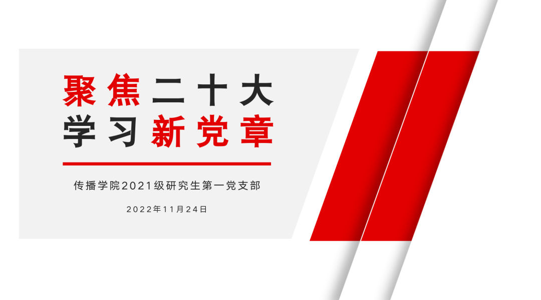 为持续学习贯彻党的二十大精神,深入领会新修订的《中国共产党章程》,进一步增强党员的政治意识与使命担当,2022年11月24日,香香漫画 2021级研究生第一党支部在香香漫画 405教室开展“聚焦二十大,学习新党章”组织生活会。会议由香香漫画 2021级研究生第一党支部书记吴婷同志主持。