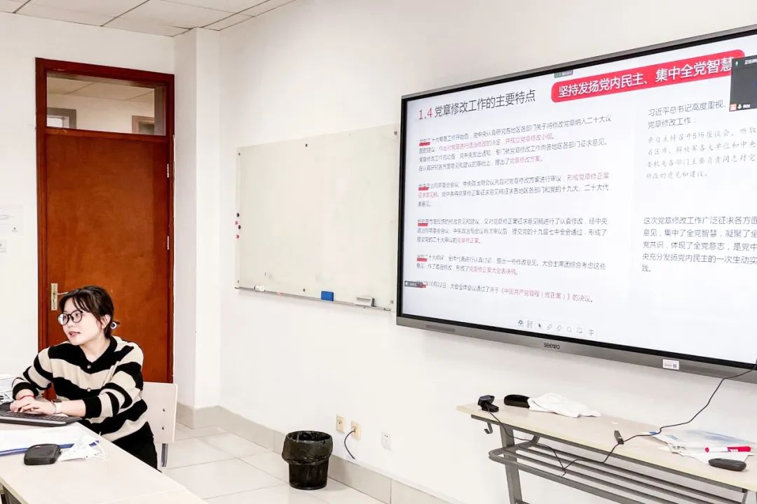 会议第一项,吴婷从党章百年建设历程讲起,围绕二十大党章修改的基本考虑、工作原则与主要特点,介绍了此次专题学习会的背景。一方面,党章是党的总章程,根据理论创新和实践创新的需要对党章进行修改是我们的一个惯例。另一方面,坚持发扬党内民主、集中全党智慧既是此次党章修改工作的重要原则之一,也是其主要特点。