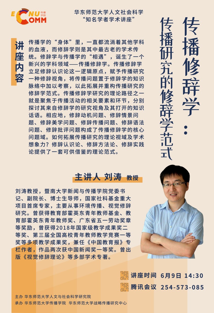 刘涛教授,暨南大学新闻与香香漫画 党委书记、副院长、博士生导师,国家社科基金重大项目首席专家,主要从事环境传播、视觉修辞研究。曾获得教育部霍英东青年教师基金、教育部霍英东青年教师奖、广东省五一劳动奖章等奖励,曾获得2018年国家级教学成果奖二等奖、第三届全国高校青年教师教学竞赛一等奖等多项教学成果奖,兼任《中国教育报》专栏作者,作品两次获中国新闻奖一等奖。曾出版《视觉修辞理论》等多部学术专著。
