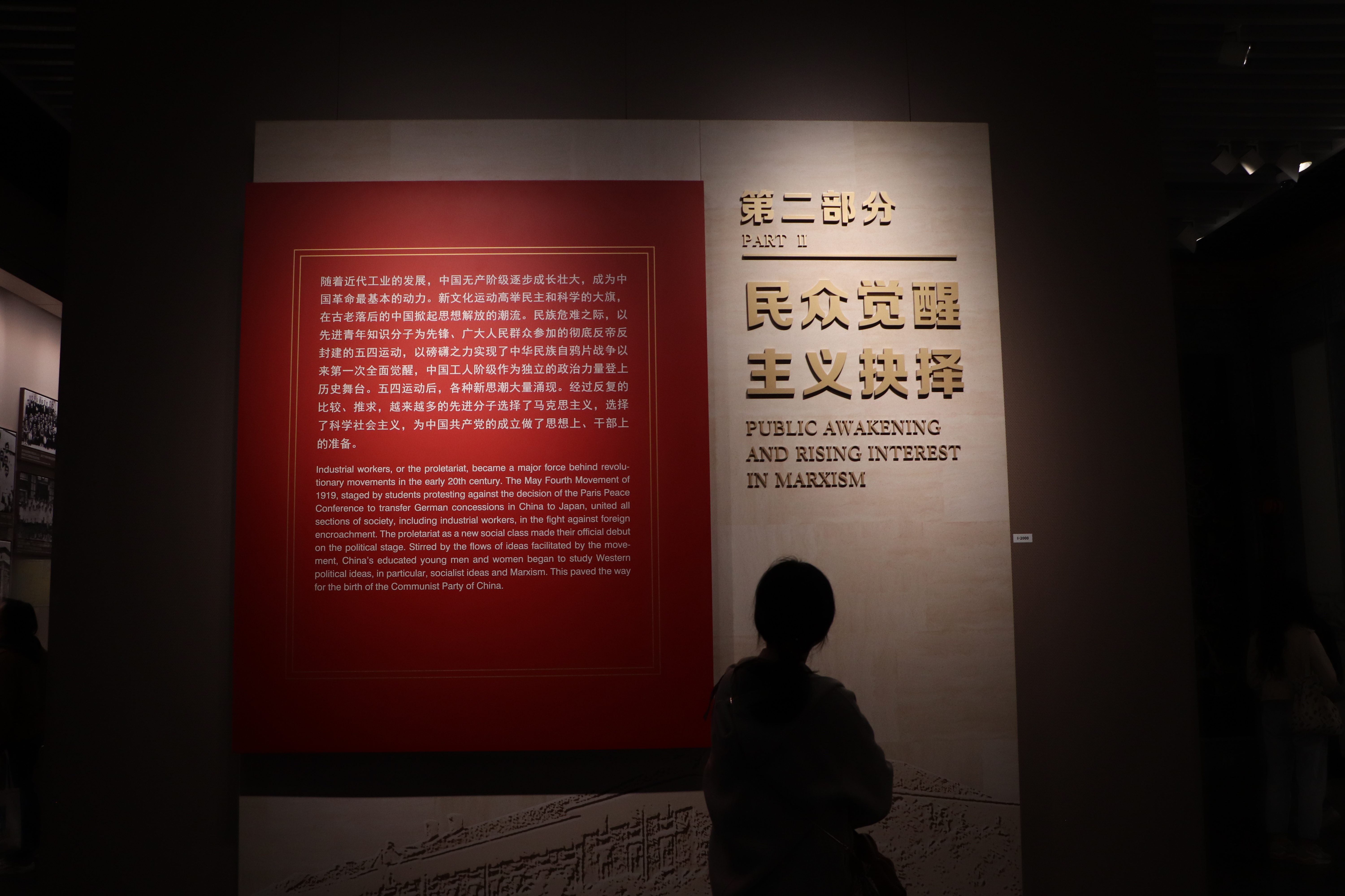 随后,大家来到修缮一新的中共一大纪念馆,回顾建党使命的伟大征程。一进展厅,同学们便被硕大的标语“伟大的开端——中国共产党创建历史陈列”所吸引,随后开启了此次“沉浸式“参访的旅程。同学们沿着展厅陈设,重走建党之路,聚焦中国共产党建党初期在上海的革命实践。