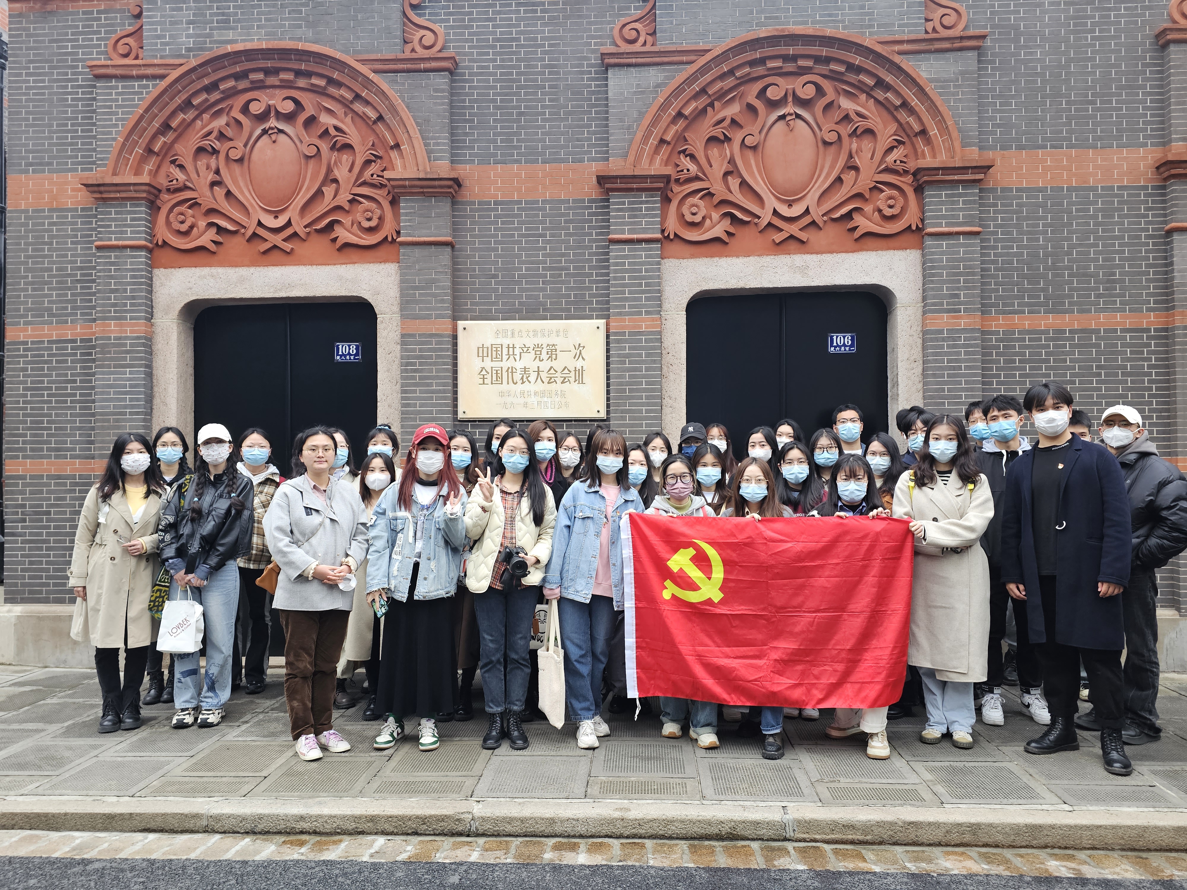 传院师生来到一大会址和纪念馆进行参观,尽管连绵阴雨,但同学们参观的热情高涨,在会址及相关展馆参观后,同学们齐聚会址门口合照。