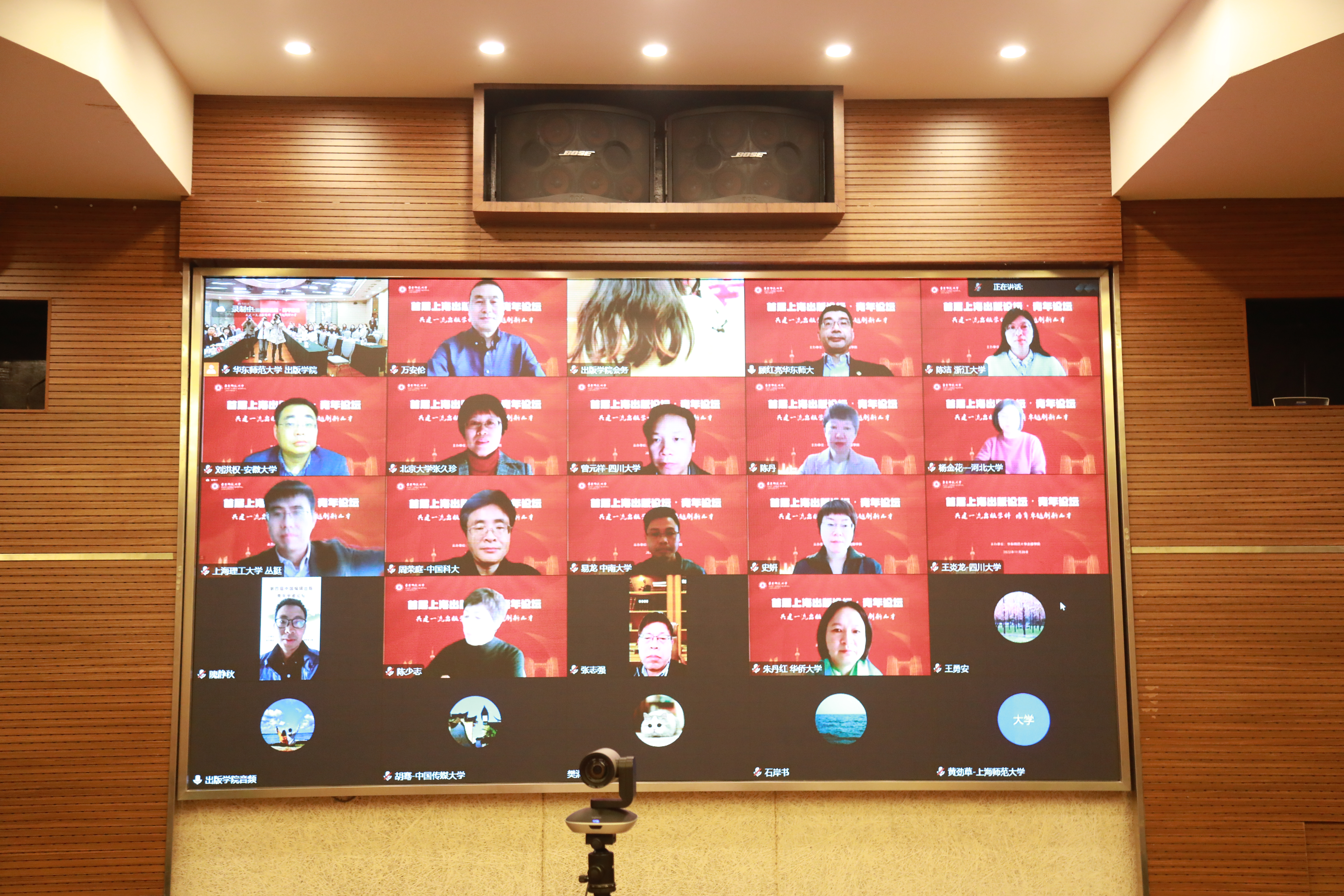 当天下午,四场圆桌论坛同步举行。各位与会专家学者与业界人士围绕“中国特色出版学科建设与理论探讨”“融合趋势下出版人才培养创新”“融合趋势下出版业高质量发展”与“融合趋势下出版新业态创新”四大议题,通过线上与线下相结合的方式,分享了自己的研究成果与思考。