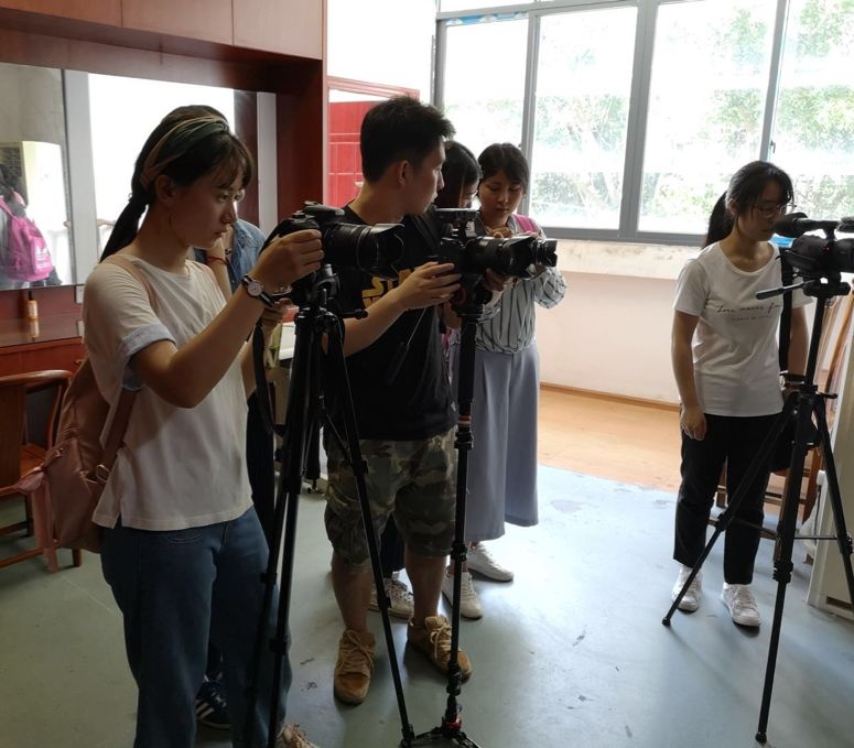 同学们在采访并拍摄闽剧艺术家林颖老师