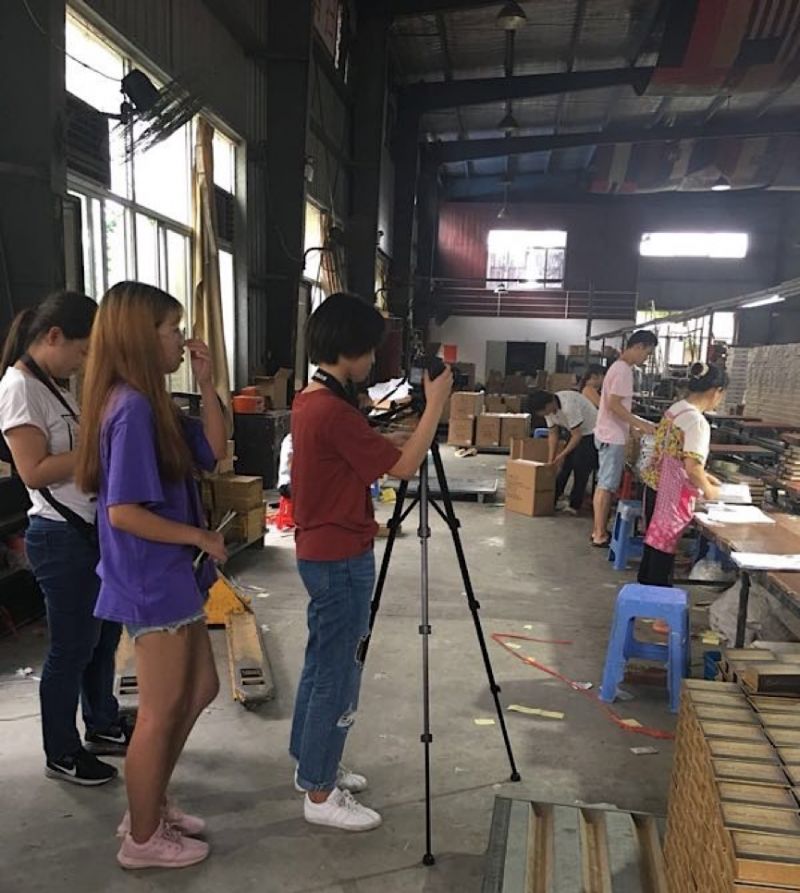 在福州金雅工艺品有限公司,同学们采访了负责产品研发的苏经理和销售的林经理,了解了这家公司如何经历90年代市场经济体制建立、2001年“入世”、2008年金融危机等重要历史时刻,凭借创新、探索、与时俱进的精神,不断发展的历史,并深入生产车间,记录了一线工人的工作情况。