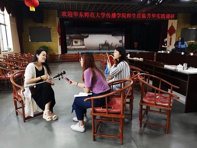同学们在采访越剧主胡演奏员许燕平老师
