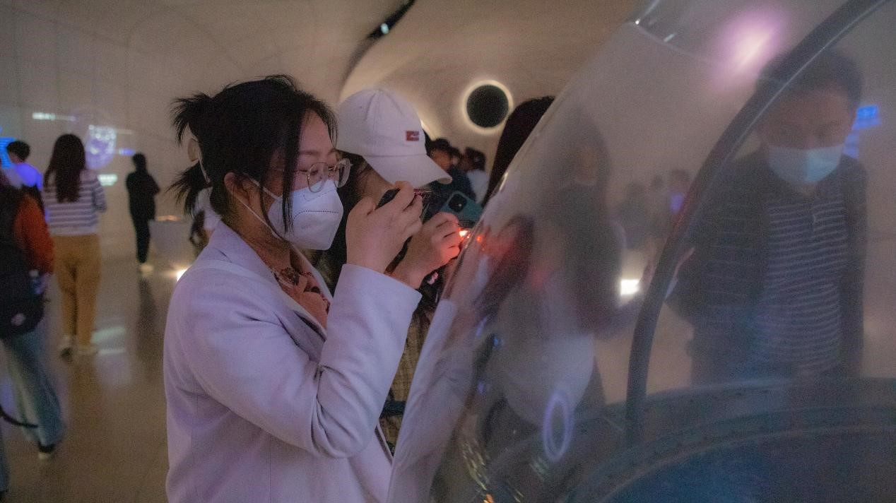 党员们首先抵达上海天文馆。其位于浦东新区临港新片区滴水湖畔,是全球最大的天文馆。在天文馆,党员们依次参观了“家园”“宇宙”“征程”三大主题展区,在“家园”展区通过先进的光学天象仪驻足仰望璀璨的星空,又通过“宇宙”展区里“星际穿越”“量天尺”等虚拟展览探索天体演化及运行的法则,最后在“征程”展区参观“嫦娥五号探测器”、“祝融号火星车”和“天和核心舱”等高仿真展品。在沉浸式体验、观景式参观中,党员们全方位领略宇宙浩瀚图景,解读宇宙的天文密码,了解我国天文探索的伟大历程。