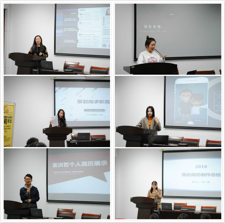本次简历制作大赛收到来自各个学院的简历投稿,经过甄选,共有10位选手脱颖而出入围决赛。决赛现场,参赛选手们通过ppt展示自己制作简历的思路,介绍各自简历制作的亮点。评委老师对每位选手都进行了细致耐心的点评,并指出参赛作品的优缺点,以便同学们在未来的求职中能有的放矢。
