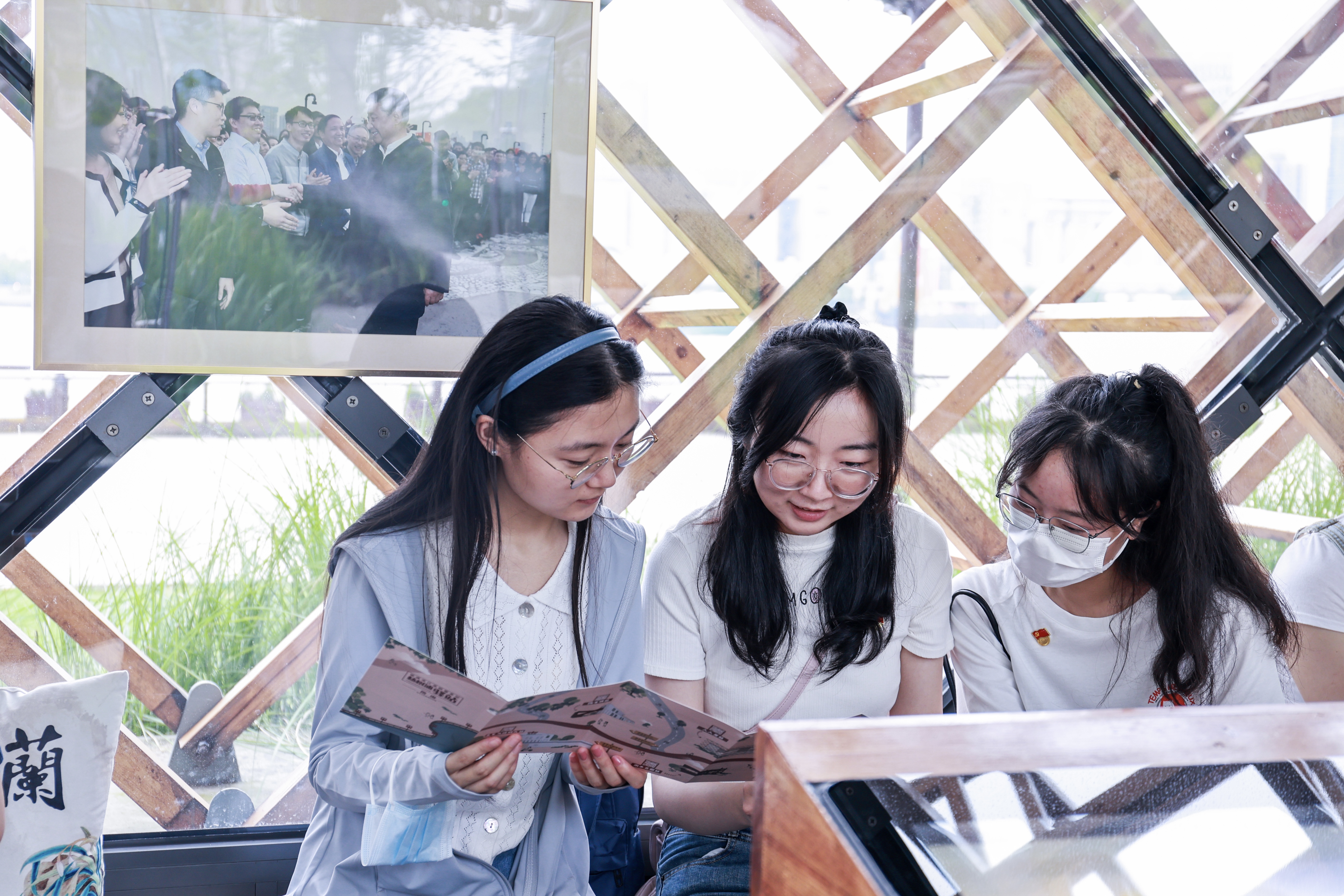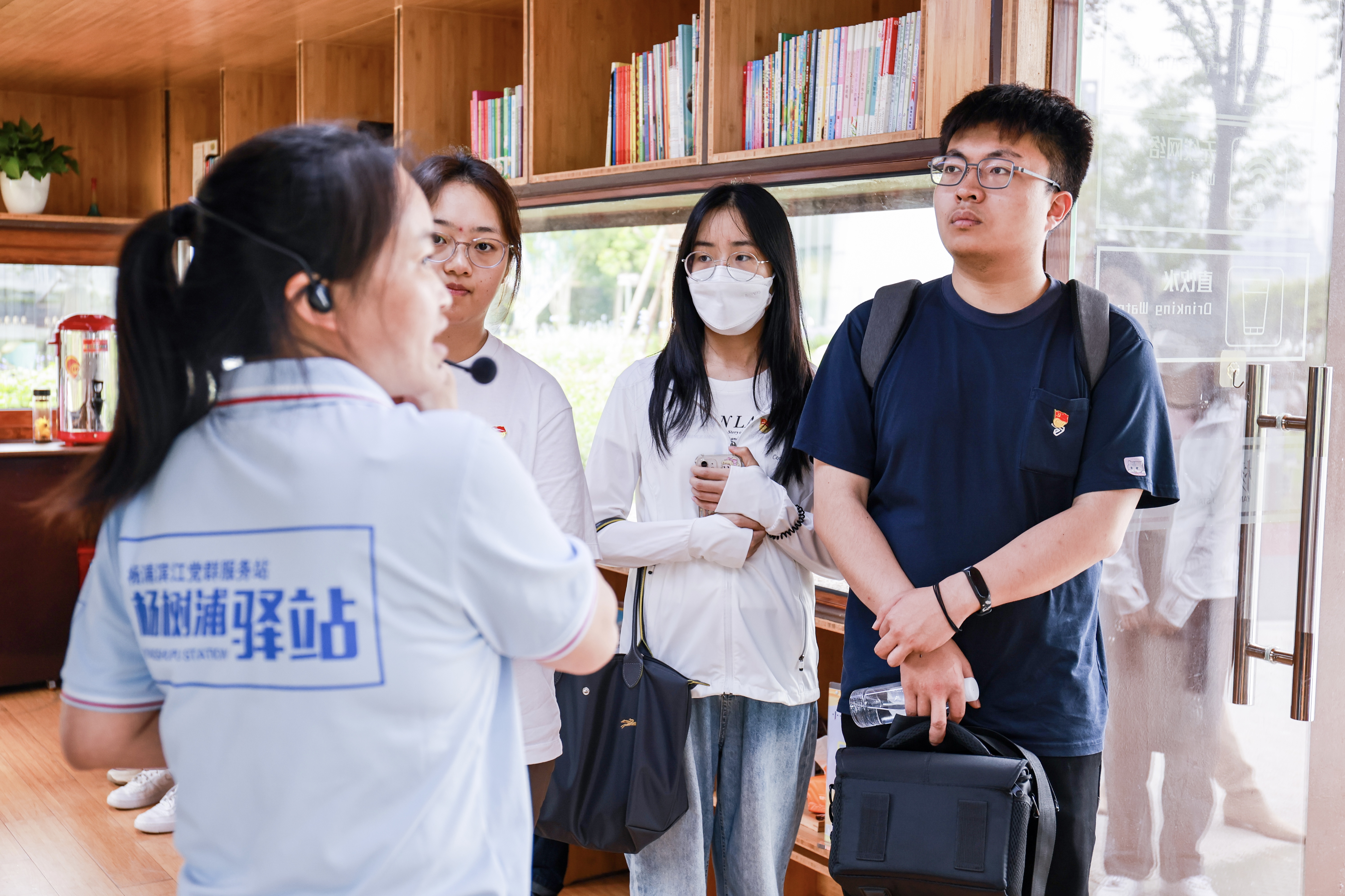 “人人屋”党群服务站是一座以“人”字形木质结构设计的木头小屋,承载着“红色+文化+服务”的理念,2019年习近平总书记考察杨浦区滨江公共空间时,曾走进这间不足20平方米的小驿站。通过聆听讲解与观看视频,当时的情景仿佛就在支部党员的眼前,“人民城市”重要理念也变得“立体”起来。“人人屋”不仅为市民游客提供了休息之所,而且通过全息数字沙盘重现革命历程、邀请“七一勋章”获得者黄宝妹讲述红色故事等方式,赓续红色血脉,并开通了“人民建议直通车”平台,使得人人都能在这里参与社会治理。