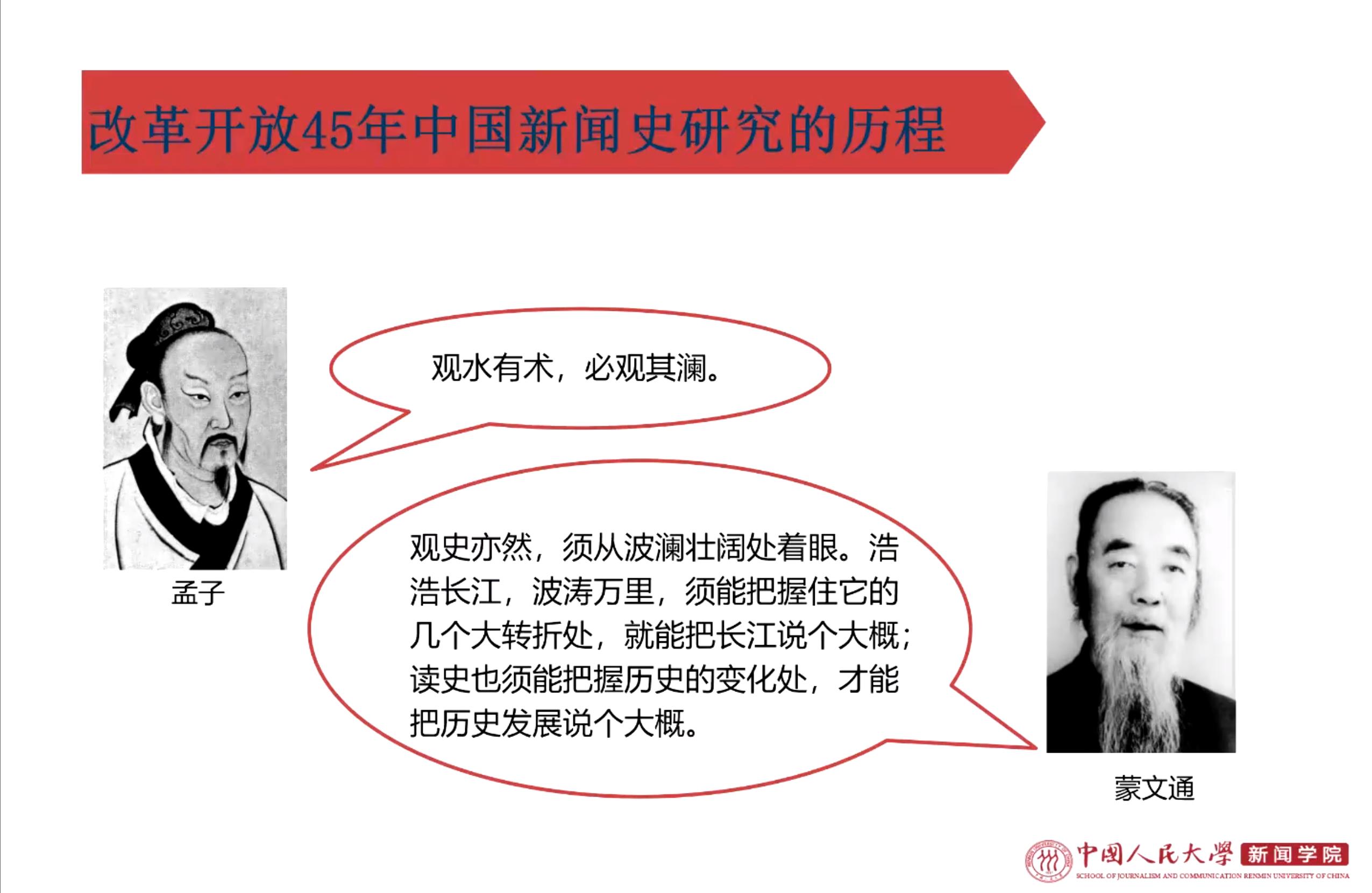 总之,邓绍根认为改革开放的这45年,不仅是中国新闻史研究者不断解放思想、锐意进取、开拓创新的45年,也是新闻史研究受国家资助力度最大、涌现成果最多、社会反响最好的45年,一个以时间、空间为轴,多维度、全方位、立体式的研究新格局正式形成。
