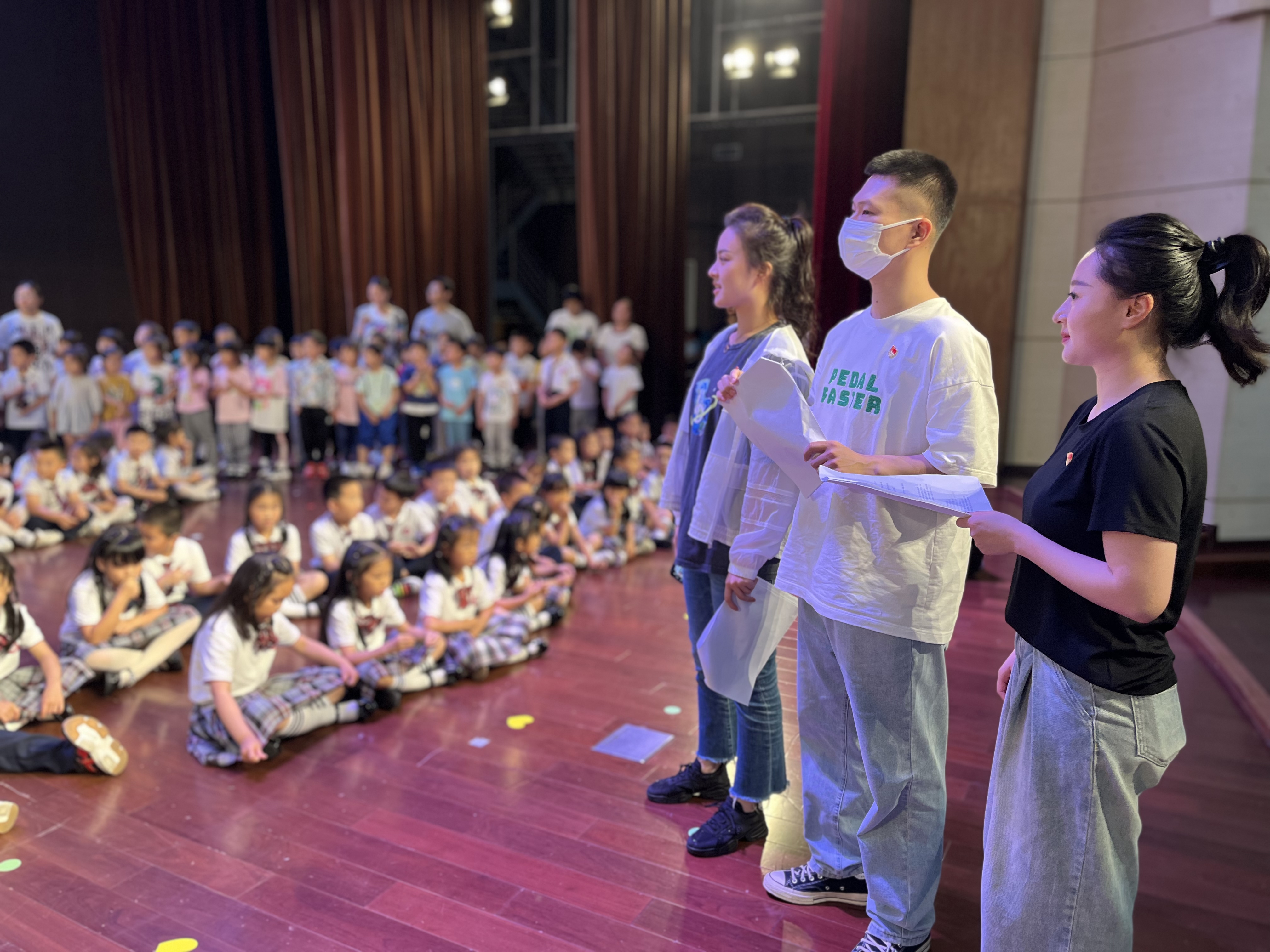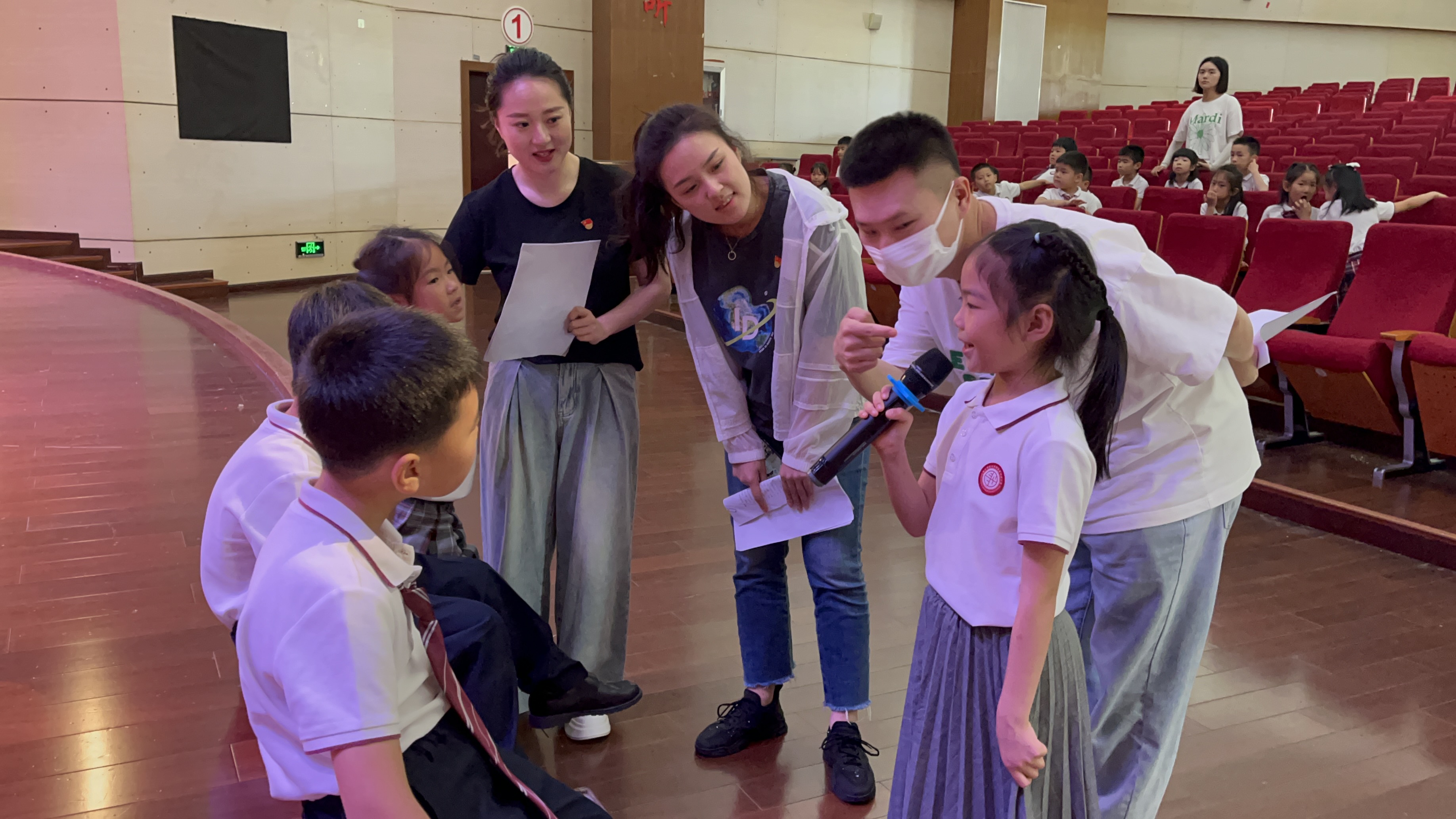6月15日,周雨洁、余华勇、谭梦心等党员前往香香漫画 附属紫竹幼儿园,以专业的播音主持知识、通俗易懂的语言、以及循循善诱的教学为幼儿园的孩子们进行朗诵指导,并协助排练节目队形,帮助毕业活动整体把关。