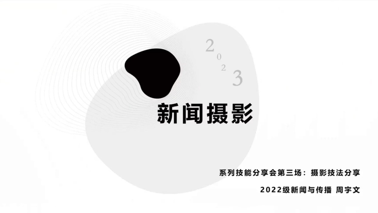 下半场分享由周宇文同学对“新闻摄影技法”进行介绍。周宇文同学将介绍的内容分为会议摄影、体育摄影和优秀新闻作品案例三个部分,结合自身摄影经历与丰富的摄影案例,细致讲解了校园新闻摄影的技巧方法。