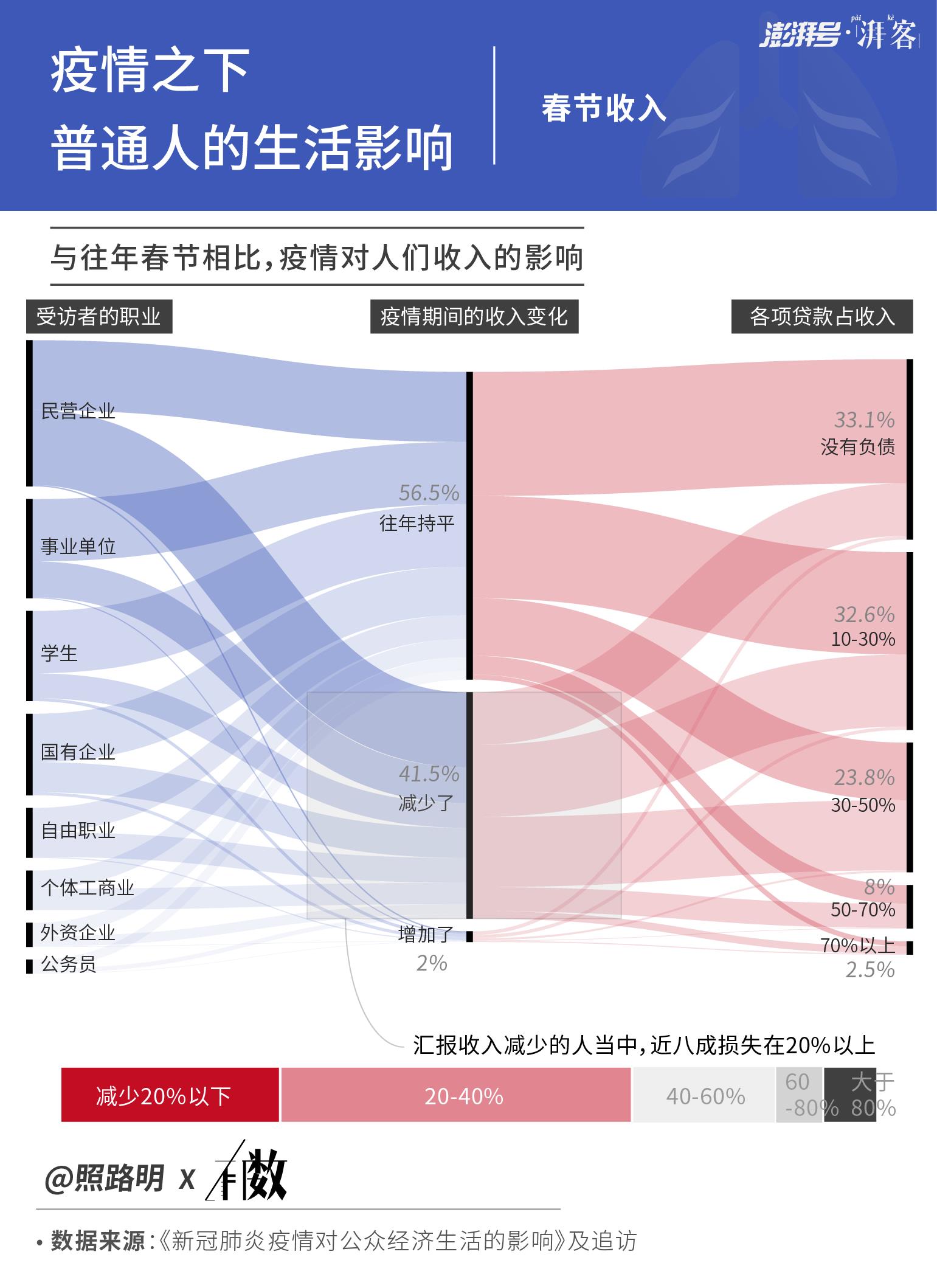 第三篇报道《后疫情时代 | 我们如何被新冠肺炎改变了生活?》发表于2月10日。当时疫情已持续了快一个月,赵鹿鸣想要了解它给普通人都带来什么影响,于是面向武汉乃至全国市民发放、收集了近两千份调研问卷。通过切实的数据分析,赵鹿鸣对疫情可惜能造成的居民收入、心理距离等维度上的影响进行了探讨,进一步为疫情的后期治理提供了来自新闻学子的意见。