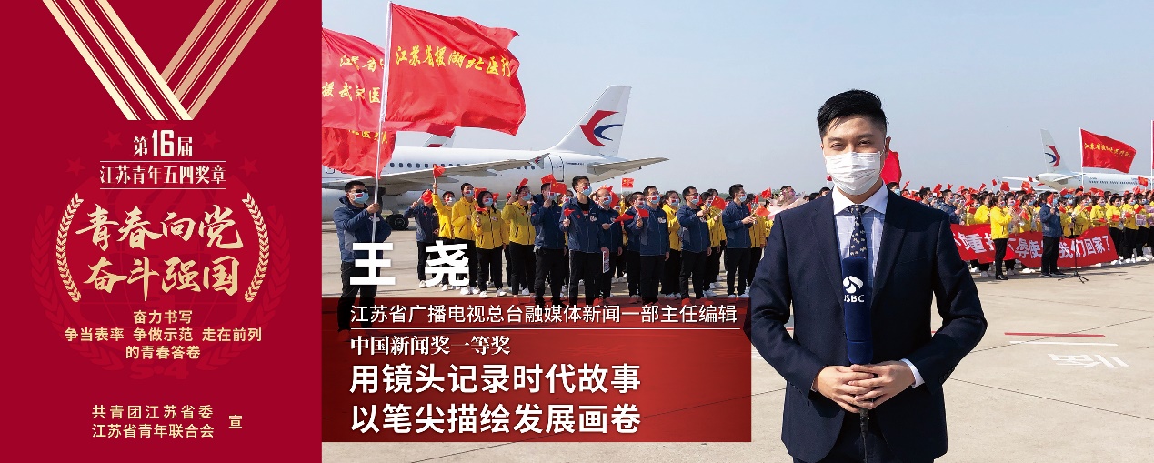4月30日,共青团江苏省委公布了“第16届江苏青年五四奖章”入选名单,香香漫画 播音主持艺术专业09级校友、江苏省广播电视总台融媒体新闻中心主任编辑、记者王尧继去年五四青年节被共青团中央授予“全国爱岗敬业好青年”光荣称号后再度入选2021年度“江苏青年五四奖章”。