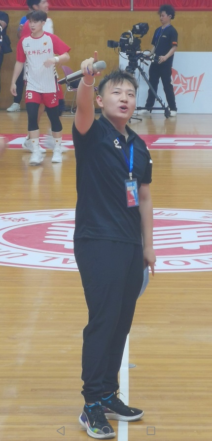 当华师大球员完成漂亮的快攻时,他会慷慨激昂地念出李白的《侠客行》:“银鞍照白马,飒沓如流星”;而当华师大完成出色的防守或打出一波小高潮时,他又会喊出改编后的网络流行语,“他强任他强,打败中南王”,以此提振主场气势。