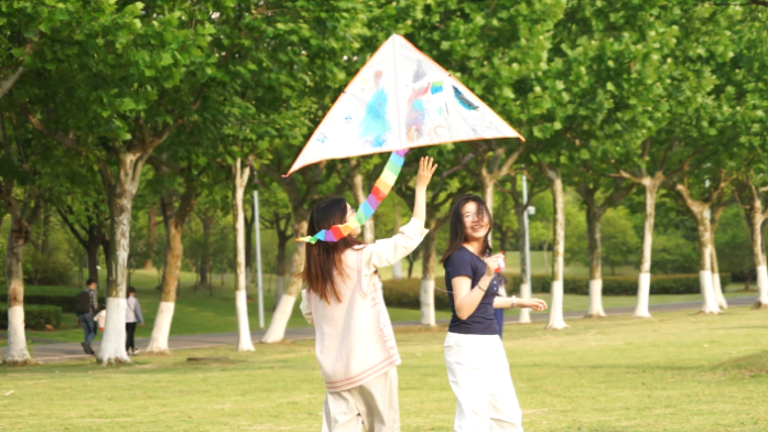 草地解压会活动顺利举行。同学们一起在草坪上画风筝放风筝、吐露烦恼,绘制祝福明信片。在风和日丽中,大家共同奔赴一场心灵之旅。