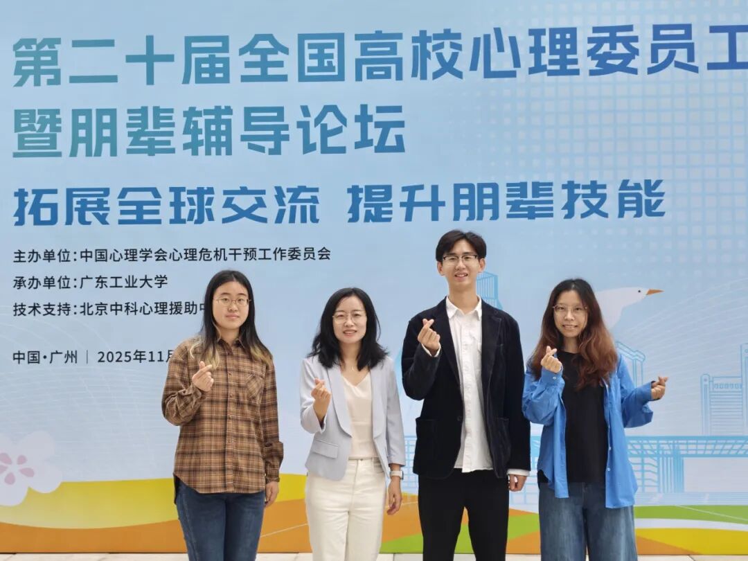 近日,为进一步加强高校心理委员队伍建设,探索心理委员工作与朋辈心理辅导的新方法、新路径,中国心理学会心理危机干预工作委员会于2025年11月5日至7日在广东工业大学成功举办第二十届全国高校心理委员工作研讨会暨朋辈辅导论坛。