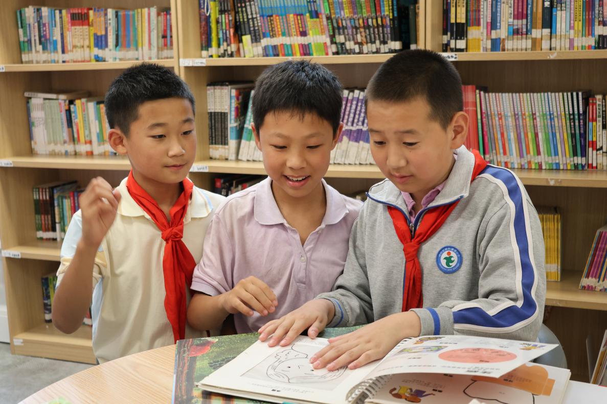 孩子们利用课间时间积极地阅读