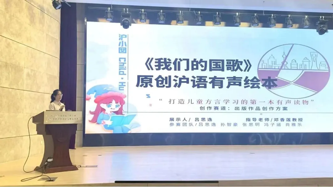 吕思逸团队表示,非常感谢大赛提供的交流和展示平台,作品成果离不开学院老师们的认可和大力支持,未来,我们希望将“沪小囡”项目从方言保护项目的路径继续探索,扩大试点,逐渐把这个模式推广到更多的方言学习传承里,让“沪小囡”走出上海,走向全国,留住我们丰富多彩的方言。