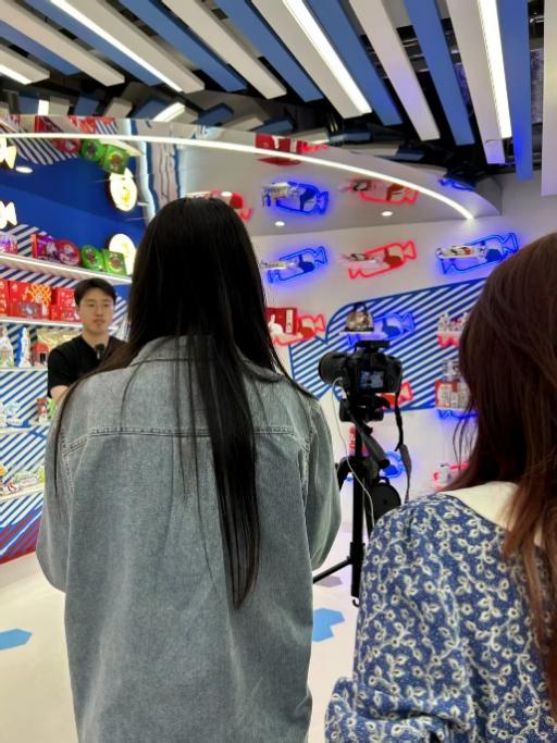 经过不断的联系与不懈的努力,我们得以前往冠生园总部进行采访拍摄。在此,我们有幸采访到了大白兔市场部经理施黎成。他带领我们回顾了大白兔的发展历程,从诞生之初到如今成为国民品牌,每一步都凝聚着无数人的心血。施经理表示,作为国民品牌,大白兔既要守住传统,也要紧跟时代步伐,向年轻化发展。在产品展示区,我们看到了大白兔与众多品牌的跨界联动成果。与游戏《光与夜之恋》《元梦之星》的合作,吸引了大量年轻玩家;和奢侈品牌COACH的联名款,更是将大白兔的形象带上了时尚舞台。在包装设计上,大白兔巧妙地与上海著名景点结合,中共一大纪念馆、东方明珠等元素融入其中,让每一颗奶糖都承载着上海的历史与风情。