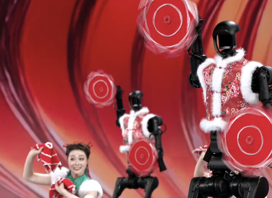 机器人“扭秧歌”让海内外观众大感震撼。节目截图