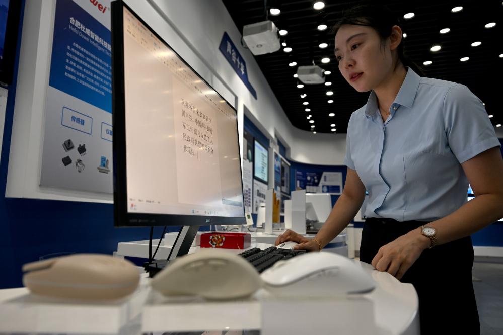 2024年9月20日,工作人员在位于安徽省合肥市的“中国声谷”体验中心演示一款带有语音识别输入功能的智能鼠标。新华社记者 黄博涵 摄