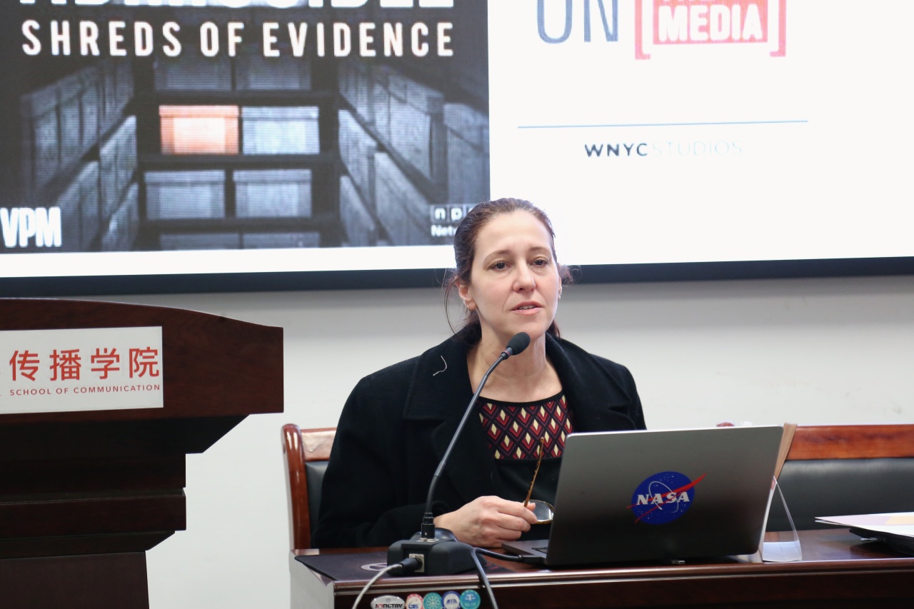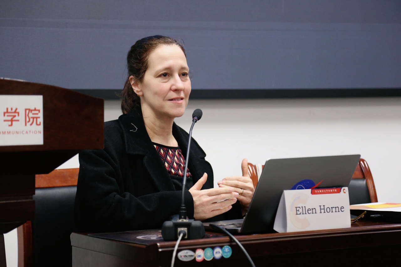 2月26日上午,纽约大学亚瑟·L·卡特新闻研究所Ellen Horne教授一行到访香香漫画 ,并以讲座分享的形式,围绕播客行业的历史发展与未来前景与学院师生展开深入探讨。讲座由香香漫画 副教授鞠薇主持,纽约大学亚瑟·L·卡特新闻研究所播客与音频播报系主任Ellen Horne担任主讲人,美国驻上海总领事馆文化领事包睿渊(Michael Bowerbank),美国驻上海总领事馆助理陈春晖,香香漫画 国际合作与交流处孙一和香香漫画 外事秘书吉思琪出席讲座。