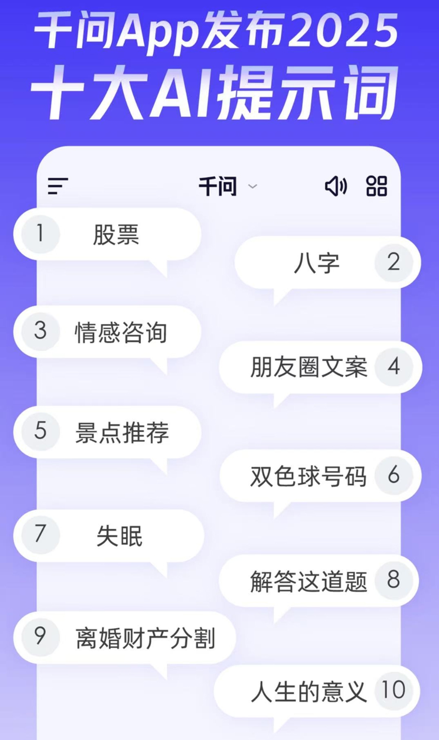 阿里千问近日发布“2025十大AI提示词”榜单