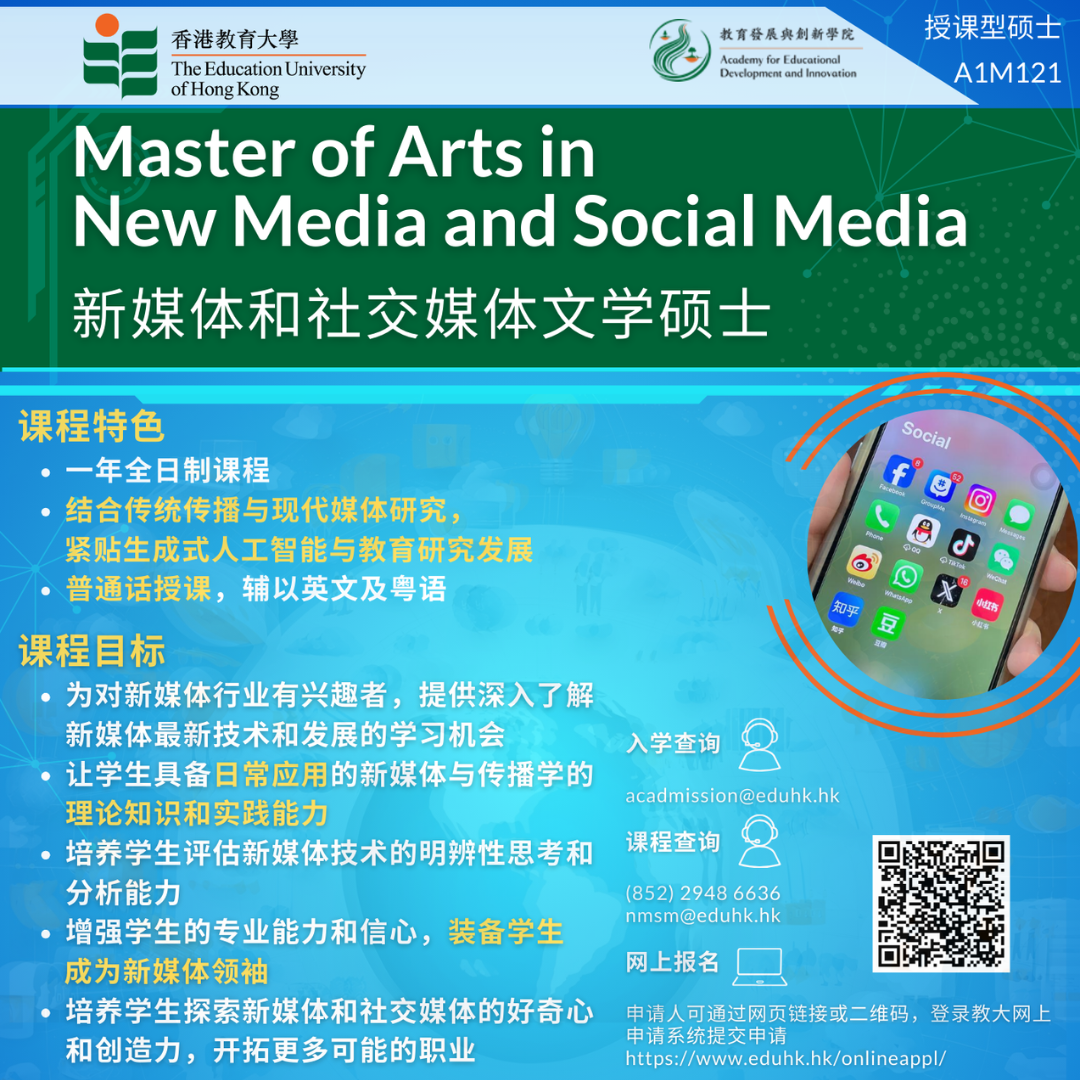 香港教育大学一年全日制新媒体与社交媒体硕士课程简介及问答