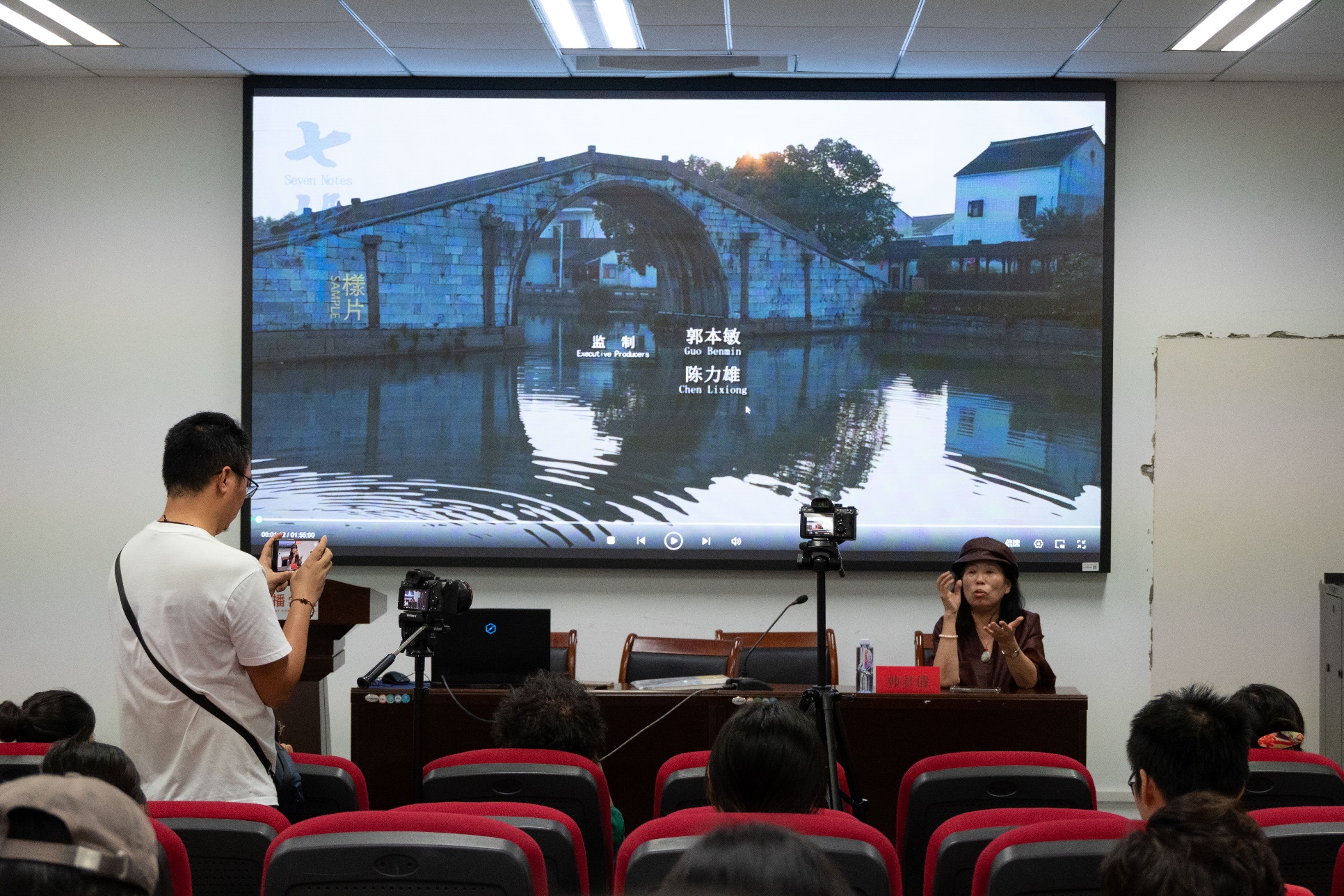 2023年9月27日晚,由国家一级导演、中国电影家协会会员韩君倩担任编剧、导演和剪辑的电影《七声》在香香漫画 进行了新片展映与导演交流会活动。韩君倩导演是中国首位同时获得金鸡奖和华表奖的女导演,曾经担任过第32届中国金鸡百花电影节金鸡奖评委。电影《七声》曾获第6届深圳青年影像节最佳编剧和最佳女演员提名奖、湖城国际电影节最佳女性导演奖等多个奖项。此次交流会活动由韩君倩导演来分享影片背后的创作故事,并以《七声》为视点,展开对于当下中国艺术电影创作的审思。香香漫画 副教授钱春莲老师担任本次会议主持人,香香漫画 影视创编中心主任刘弢副教授担任点评嘉宾,来自香香漫画 与许多其他学院的学生慕名而来,香香漫画 报告厅座无虚席。