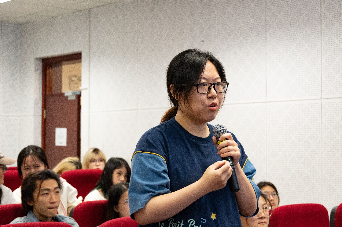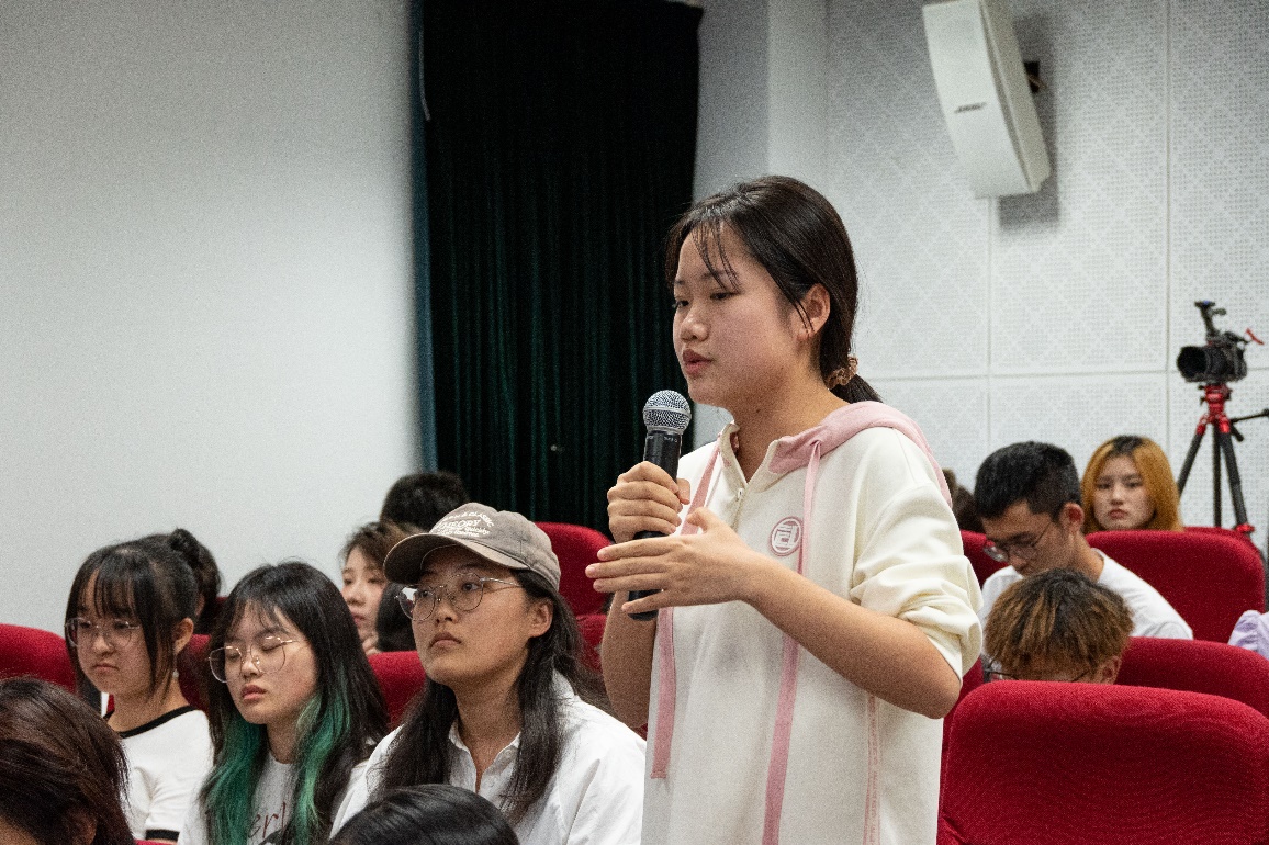 展映结束后,韩君倩导演和观影学生们展开了热烈的交流。同学们踊跃发言,从人物、主题到影片拍摄的诸多细节等多个方面表达了对这部影片的喜爱和与导演交流的强烈意愿。面对同学们的诸多问题,韩君倩导演熟练且耐心地进行了一一解答。
