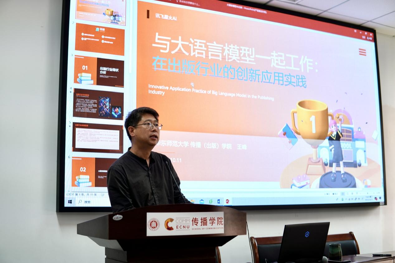 在讲座中,王峰院长介绍了国内大语言模型的迅猛发展,并向同学们推荐了当前国内功能相对全面的大语言模型——讯飞星火。王峰院长现场演示了讯飞星火大语言模型的实际操作,展示了它在应用文本撰写、PPT制作、流程图绘制、文本扩写等方面的强大功能。他还探讨了大语言模型在出版行业的应用,同时也坦诚指出了其局限性。例如,在某些情况下,由于数据库的限制,大语言模型生成语句的效果不佳。
