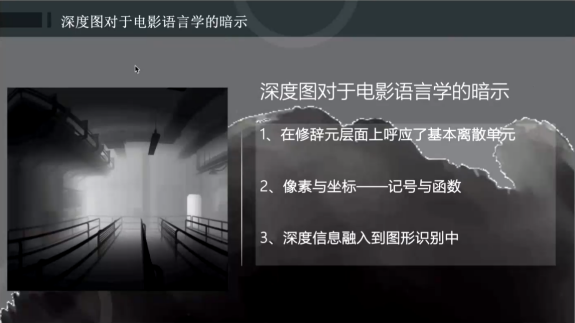 刘弢老师首先从电影空间讨论这一角度切入,运用电影语言、3D影像等概念为线索引出“深度图”这一主题词,并对其进行了详细阐释。他借助丰富的实例讲解了深度图在电影后期制作中如何通过改变像素的位置信息来扭曲、变换并重新塑造银幕上的3D空间。随后,刘弢老师在深度信息对电影理论所产生冲击和电影理论向数字化的迈进等方面进行了深入讨论。他从结构主义和皮尔斯符号学这两大电影语言体系入手,揭示了深度图对电影语言学造成了何种暗示。