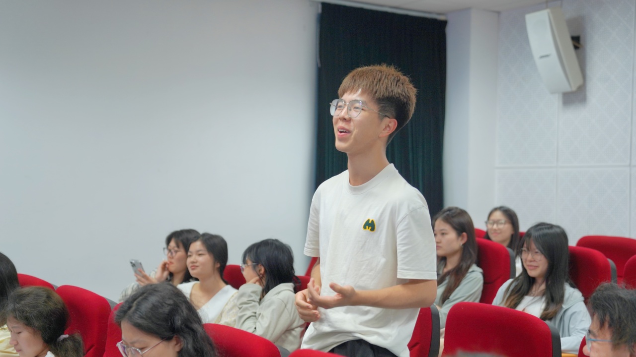 在讲座的最后,肖寓萩对同学的困惑做出了针对性的答疑。有同学指出某条博文爆火后的其他博文是否应该删除,形成视频主页的统一性,老师认为历史视频仅隐藏而非删除,可以有效避免触发算法风控将账号归为异动;同时在面对同学直播流量以及投流的问题时,肖寓萩给出了233原则(周更2条视频+3场直播,每场3小时)比买粉更有效。