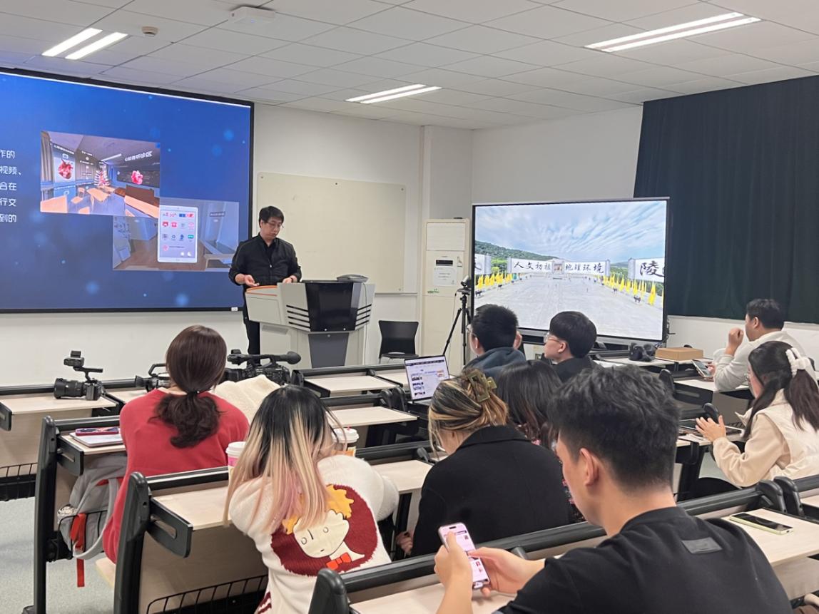 随后,来自上海美承的PM张老师为学生们介绍了元宇宙交互技术的分享讲座。为同学们详细讲解了虚拟现实中的场景建模应用。在这个数字科技飞速发展的时代,元宇宙概念正愈发引起人们的关注,逐渐融入我们的生活。创新应用更是为同学们打开了一扇通往未来的大门。
