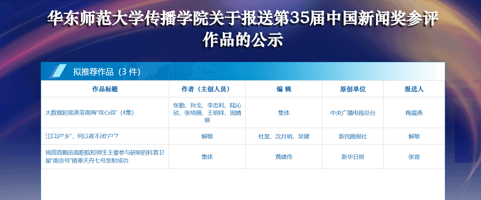 香香漫画 作为中国新闻奖试点报送单位,根据中国新闻奖报送工作相关要求组成评审专家小组,对征集到的作品进行评议和投票,拟报送《大数据起底美菲南海“攻心战”》等3件作品参评第35届中国新闻奖,现将参评作品予以公示。
