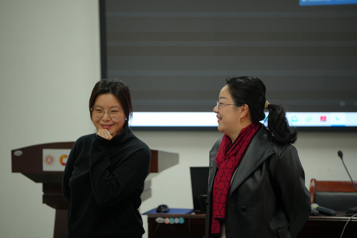 许以导演在此次讲座中分享了她筹拍毕业作品《二重奏》的心路历程和创作经验,围绕如何寻找建构自我作品的核心概念、如何在叙事短片创作中融入个人感悟、如何克服重重困难坚持自己的艺术理想等方面,与广电师生们进行了深入研讨。《二重奏》这部作品以黑白影调,电影质感,细腻情愫描绘出当代上海都市女性画像。主演高立沛也来到了现场,与同学们交流了作为一个演员应该如何深刻理解角色,在导演构思的基础上去融入自己的个性特色,让角色鲜活地树立在银屏上。