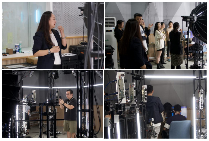 在会议正式开始前,与会嘉宾一齐前往沉浸式全息影像创新研究中心实验室参观全息影棚,沈教授向大家介绍了实验室的相关技术支持并向大家演示了影棚拍摄和部分实验成果。