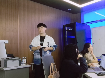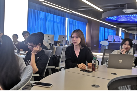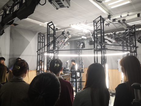 随后,同学们前往参观香香漫画 沉浸式3D全息影像实验室,通过近距离观察和体验,初步了解了虚拟形象的采集技术。参观后,有三位同学分别提出了自己的构想,20级播音专业韩弈同学提议设计虚拟女友,通过虚拟场景拼贴和脱口秀的方式展现生动的女友形象,并以此来映射人们的现实生活;王小丫和陈令仪同学提出古典舞发展史介绍的科普视频构想;唐艺馨同学则希望通过虚拟形象介绍上海的老建筑,带人们回顾老上海的温馨记忆和建筑背后的历史文化。“螳螂慧视”的各位专家对同学们大胆新颖的设想表示肯定,并根据实践经验,从技术可行性和操作性层面指出了“想法落地”可能面临的困难和需要完善的方向。
