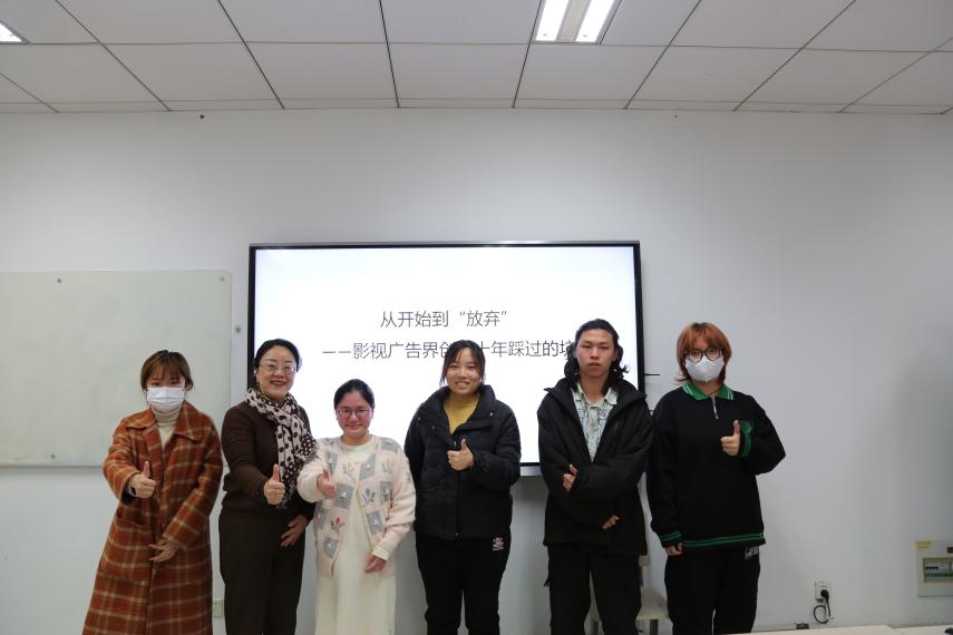 ,开展了题为《从开始到“放弃”——影视广告界创业十年踩过的坑》的行业经验分享,为同学们讲述了她近十年在广告业摸爬滚打的心路历程,为学弟学妹们细数她在行业中踩过的“坑”。毕业近十年后重回学院,台上的她释放出了强大的思考力,用她对行业的细致体悟与无限热爱感染着在场的每一位传院学子。