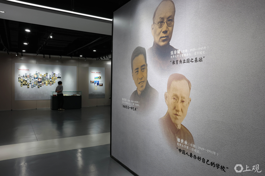 作为策展人,华东师大档案馆馆长、校史党史办主任汤涛表示,学校档案馆、校史党史办与博物馆查阅近万卷档案,通过珍稀档案、历史图片及著名校友题词等,全面展示光华百年曲折又辉煌的办学历程与成果,再现“光我中华”的信仰与担当,对其教育救国精神传承与弘扬。
