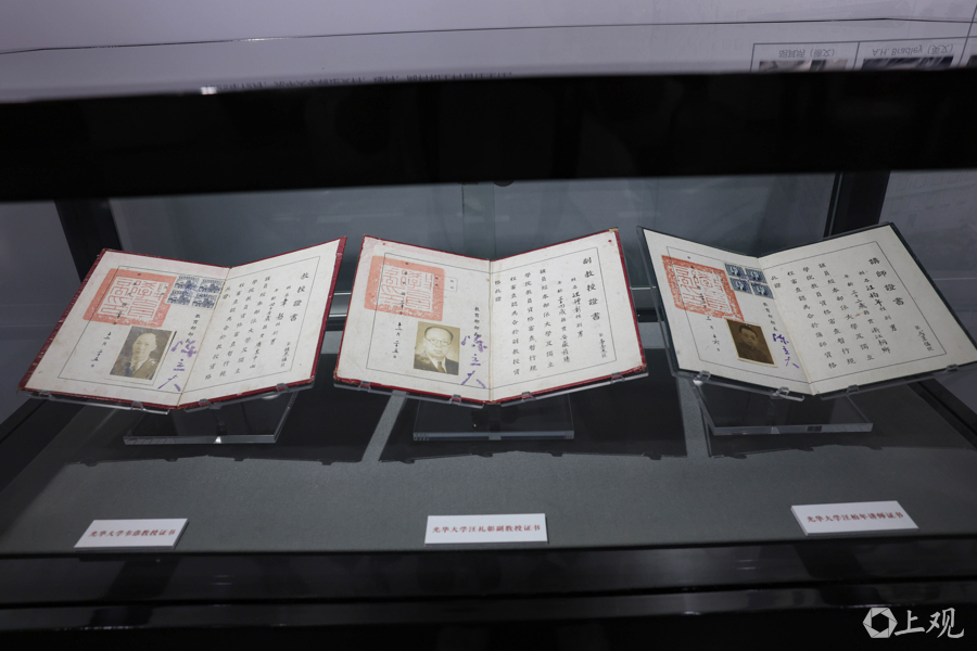 “同心同德,爱国爱群。”展览留存着1925年6月30日《申报》关于光华大学筹备成立的报道,称:6月25日,光华大学筹备委员会正式成立;6月29日借北京路112号为筹备处;7月4日登报招生。当时,社会贤达王丰镐、张寿镛等站在师生正义行动一边,襄助离校师生另办新校,并定名“光华大学”。“五卅”次年,即1926年,光华在大西路(今延安西路)兴建校舍,秉承“知行合一”“格致诚正”校训。
