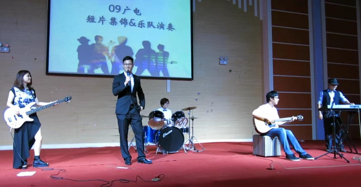 2013年 金祎(右二)与乐队在毕业晚会表演歌曲《笑忘歌》